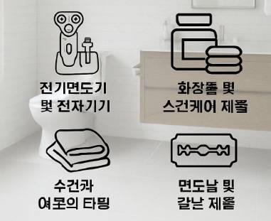 화장실은 습도가 높기 때문에 전기 제품의 고장 원인이 되기 쉽습니다. 특히 전기면도기, 전동칫솔, 헤어드라이기 등은 내부 부품이 습기에 노출되면 부식되거나 오작동이 발생할 수 있습니다. 전기 합선 위험도 있어 화재로 이어질 가능성도 존재합니다. 충전기나 콘센트를 항상 연결해 두는 것도 위험 요소가 되므로, 사용 후에는 건조한 곳에 보관하는 것이 좋습니다.