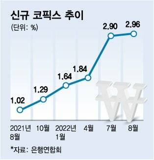 내 월급빼고 다오르는 것 중 최근 '갑' 먹고 있는 게 금리예요! 한국은행 기준금리가 3.00%고요, 은행 주담대 금리는 7%를 바라보고 있어요. 코픽스(cost of fund index) 아시죠? 변동금리 대출의 기준이 되는 건데요, 은행은 코픽스 기준으로 두부의 신용도를 반영해 '이만큼 빌려줄게'를 정해요. 근데 이 코픽스가 10년만에 3%대를 돌파할 것 같아요. 아래 보면 엄청 급격히 뛰었죠!