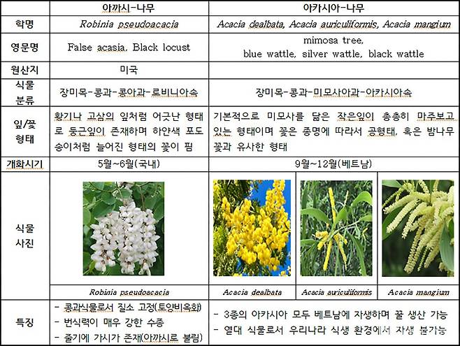 아까시꿀 명칭 바로잡기는 소비자 혼선을 줄이기 위한 조치다. 현재 유통 중인 일부 수입 꿀, 특히 베트남산 꿀에는 ‘아카시아꿀’이라는 표기가 붙어 있다. 하지만 이들 꿀은 아까시나무가 아닌 다른 식물에서 채밀됐다. 꽃 종류가 다르고 향과 색, 심지어 성분도 차이가 있다.