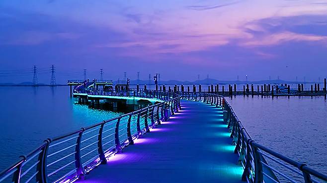 낮에는 평범한 산책로처럼 보이지만, 해가 저물면 789개의 LED 조명이 일제히 점등하며 서해의 밤을 화려하게 물들인다.