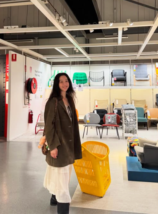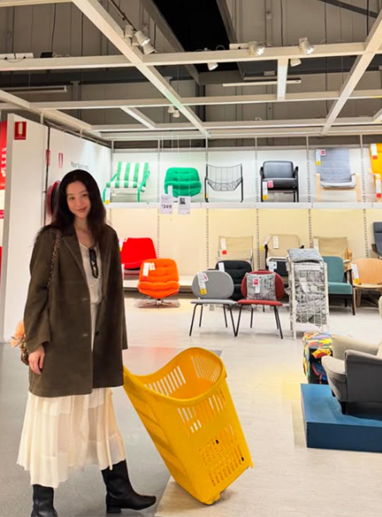 여기에 레이스 디테일이 은은하게 드러나는 아이보리 롱원피스를 매치해 여성스러운 매력을 더했다.