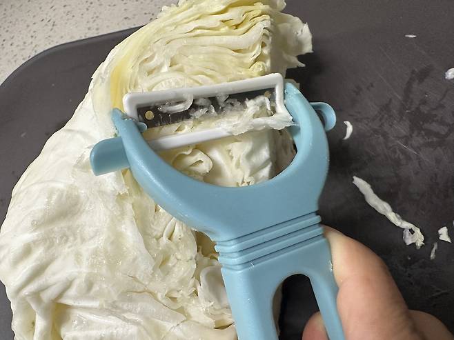 그럴 때 이제는 칼 대신 야채칼을 활용해서 채 썰어보세요! 이렇게 하면 아주 얇게 슬라이스 되면서 샐러드나 토스트 만드는 재료 만들기 너무 편하더라고요.