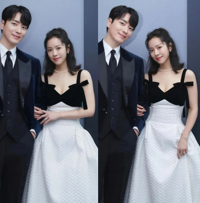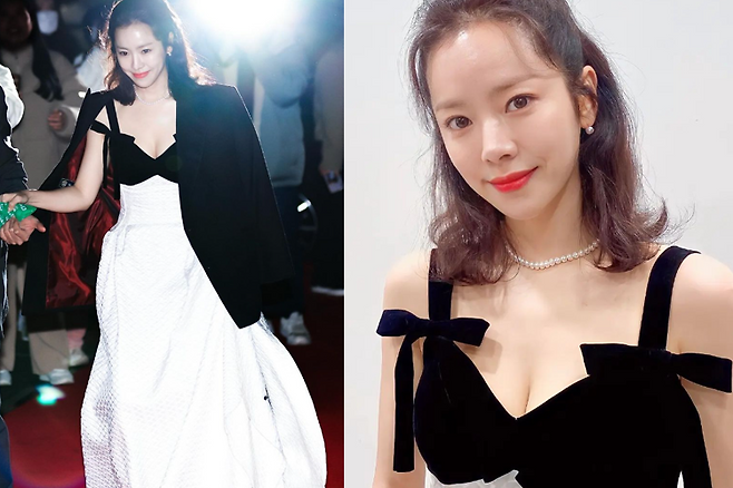 한지민은 블랙앤화이트 드레스로 시크하고 모던하면서 사랑스러운 느낌을 자아냈다.