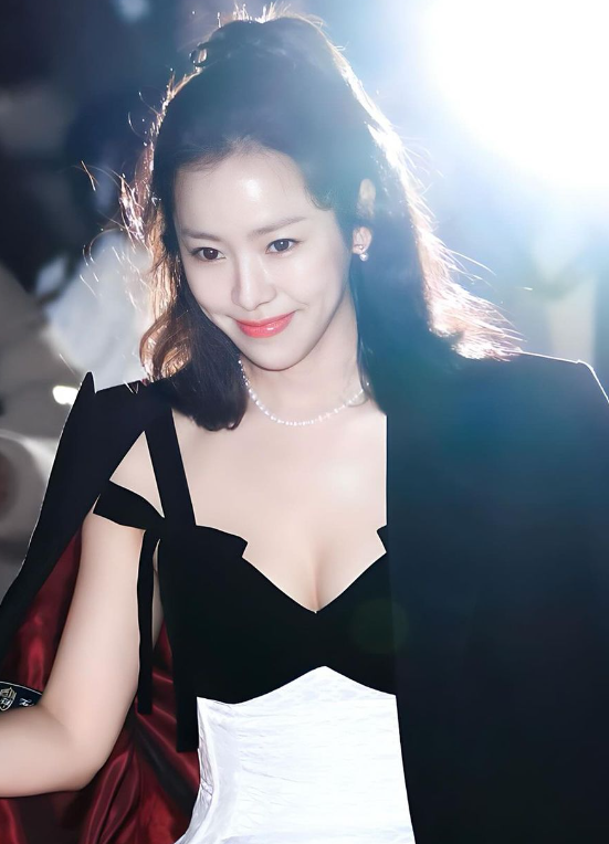 한지민은 드레스에 블랙 자켓을 걸치고 진주목걸이로 우아하고 고급스러운 분위기를 자아냈다.