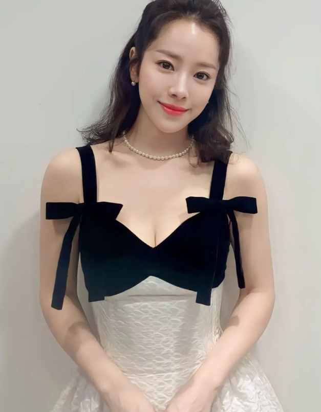 한지민은 리본이 달린 드레스를 입고 반묶음 헤어로 또렷한 이목구비를 뽐냈다.