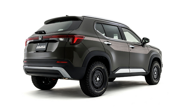 담드는 일본 국산차를 미국이나 유럽 차량처럼 변신시키는 스타일링 키트로 유명하다. 이번에 공개한 WR-V용 키트는 직사각형 후드 커버, 새로운 펜더, 투박한 전면 범퍼를 적용했다. 특히 라디에이터 그릴은 지프 고유의 디자인을 연상케 하지만, 지프의 상징인 7개 수직 슬롯 대신 6개를 적용해 미묘한 차별화를 뒀다.