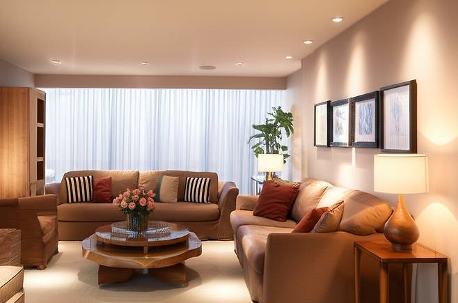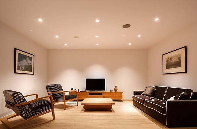 다운라이트는 천장에 매립되는 형태의 조명으로, 깔끔하고 모던한 인테리어를 연출하는 데 효과적입니다. 직접 조명 방식이지만, 빛이 아래로 부드럽게 확산되어 눈부심이 적고, 은은한 분위기를 조성할 수 있습니다. 특히 거실은 휴식, 독서, TV 시청 등 다양한 활동이 이루어지는 공간이므로, 다양한 조명 연출이 가능한 다운라이트는 매우 유용합니다.
