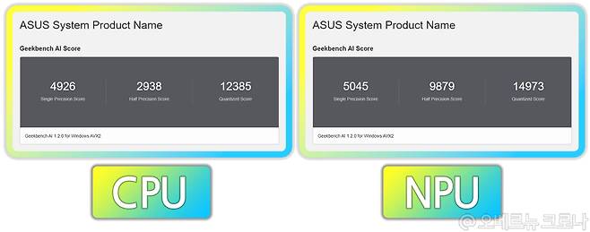 특히, 인텔 225F CPU의 경우, 내장 그래픽은 빠졌지만, 강력한 AI 성능을 제공하는 NPU와 NPU 부스트를 활용할 수 있는데요. Geekbench AI 등의 테스트도 함께 진행해 보면, 실제로 해당 프로세서의 경우, 각각의 벤치마크에서 향상된 퍼포먼스를 보여주면서, AI 가속을 지원하는 NPU 활용 시 압도적인 AI 성능을 확인할 수 있었습니다. 물론, ASUS ROG STRIX B860-G GAMING WIFI 메인보드는 편리한 NPU 부스트 기능을 통해, NPU를 오버클럭 해 최대 24%까지 성능을 향상시킬 수 있기 때문에, 효과적으로 시스템 성능을 향상시킬 수 있죠.