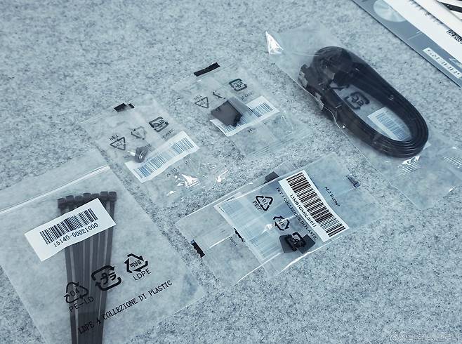패키지 구성품을 살펴보면, ASUS ROG STRIX B860-G GAMING WIFI 메인보드 본체와 SATA 케이블, 사용자 매뉴얼이나 조립 나사 등의 기본 구성 외에, 와이파이 7을 지원하는 초고성능 안테나를 제공하면서, PCIe 5.0 기반의 차세대 인터페이스는 물론, 무선 연결성까지 갖춘 모습을 확인할 수 있고, 게이밍 라인업답게, ROG 스트랩이나 스티커 장식을 제공해, ROG 감성을 챙긴 모습입니다.