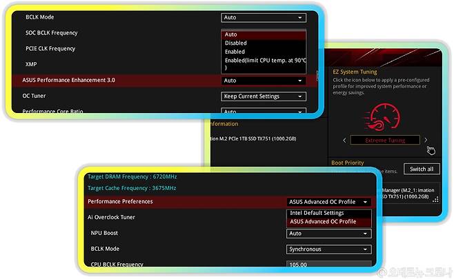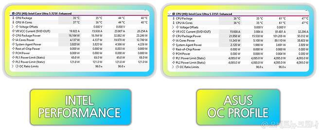 Performance Preferences는 인텔과 ASUS 권장 설정으로 구분되며, PL1 및 PL2를 각각 CPU와 메인보드 지원 한계치로 유지해, 보다 효율적인 방법으로 최대 성능을 보장합니다. 리뷰에서는 인텔 권장값을 적용해, 인텔 CPU 성능을 함께 비교해 봤는데요.