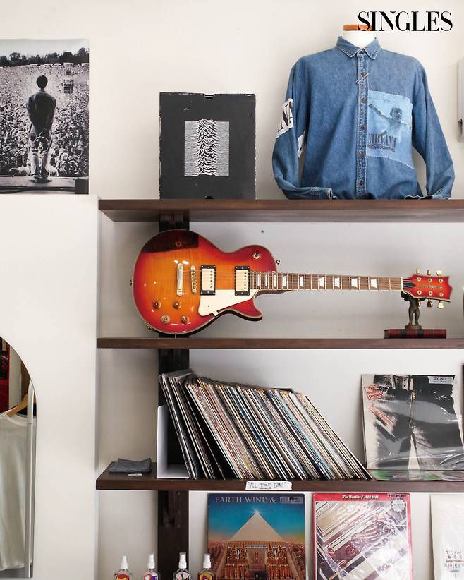 너바나처럼 국적이 다른 밴드 티셔츠도 찾아볼 수 있고, 고객의 다양한 취향을 고려해 ‘밴드’ 꼬리표가 없는 아이템까지 아우르며 적절한 밸런스를 유지하는 곳. 여름이면 티셔츠와 칼라 셔츠를 내놓고, 날이 추워지면 코트와 니트 등 아우터 웨어를 넉넉히 채워 넣는다. 1층 양 벽을 차지하는 선반에는 바이닐과 CD를 진열해 ‘음악 디깅’하기도 좋다.