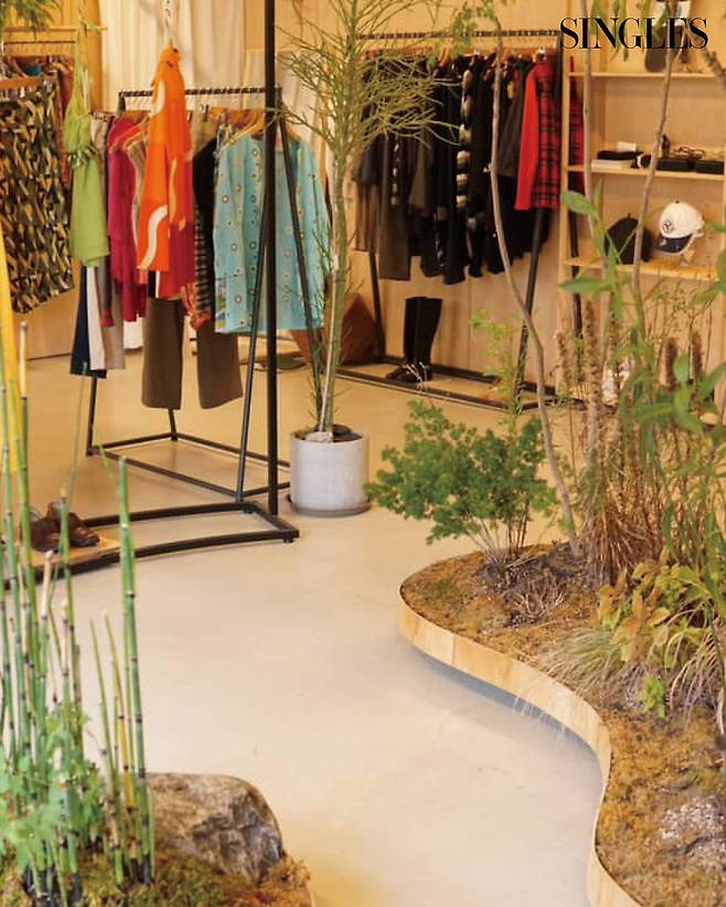 나이키 하이톱 슈즈 안에 풀을 심은 오브제가 이곳의 정체성을 대변한다. 보노비스타는 18년간 빈티지 의류를 다룬 주인이 플랜테리어 업체인 보타와 공간을 공유하며 패션과 식물을 소개하는 곳. 부산이 가진 따뜻한 기후와 바다라는 지역 특색을 반영해 일본과 유럽에서 수입한 1980~1990년대 아이템을 주로 다루고 있다.