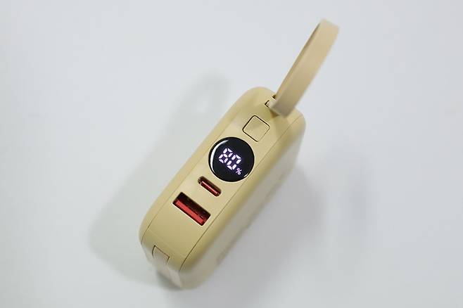 USB 포트 옆에 있는 원형의 LED 디스플레이는 배터리 상태를 표시해주는 용도로, 옆에 있는 버튼을 한 번 누르면 약 30초간 배터리 잔량이 퍼센트로 표시된다.