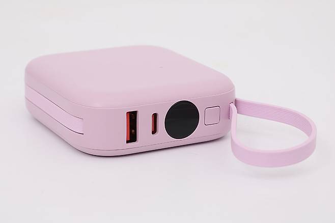 측면을 보면 USB A타입 포트와 C타입 포트가 하나씩 있고, 동그란 모양의 LED 디스플레이와 네모난 버튼 하나가 위치해 있다. A타입 포트는 출력 전용이며, C타입 포트는 입력 전용으로 용도가 완전히 다르다.