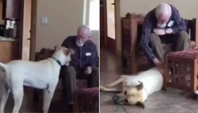화면 속 로스코는 아버지 곁을 지키며 애교를 부리고 있었습니다. 아버지에게 간식 달라고 꼬리를 흔들고, 때로는 조용히 발치에 누워 있기도 했습니다.