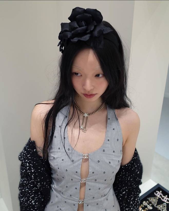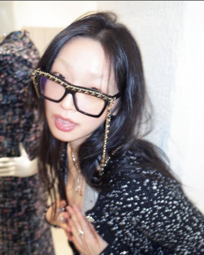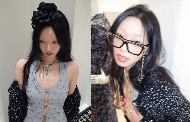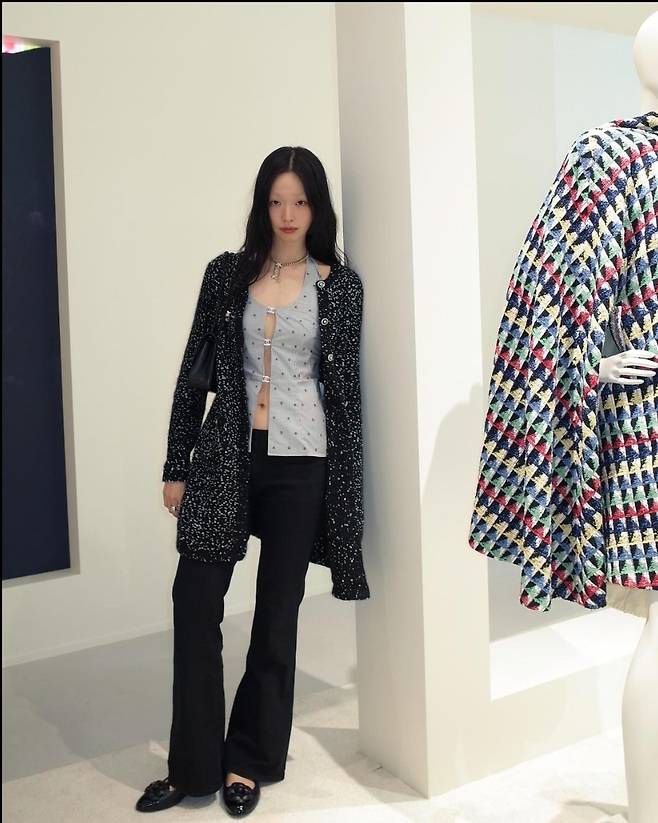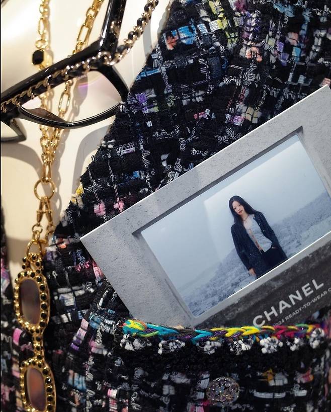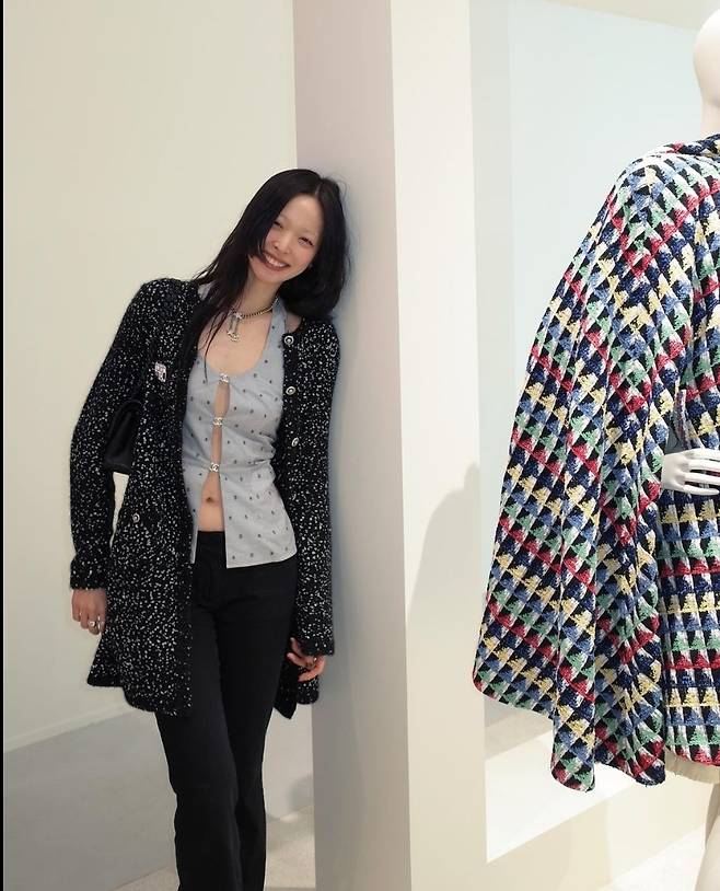특히 유채원은 검은색에 흰색 도트 무늬가 어우러진 트위드재킷을 착용해 고급스럽고 멋스러운 코디를 완성했습니다.