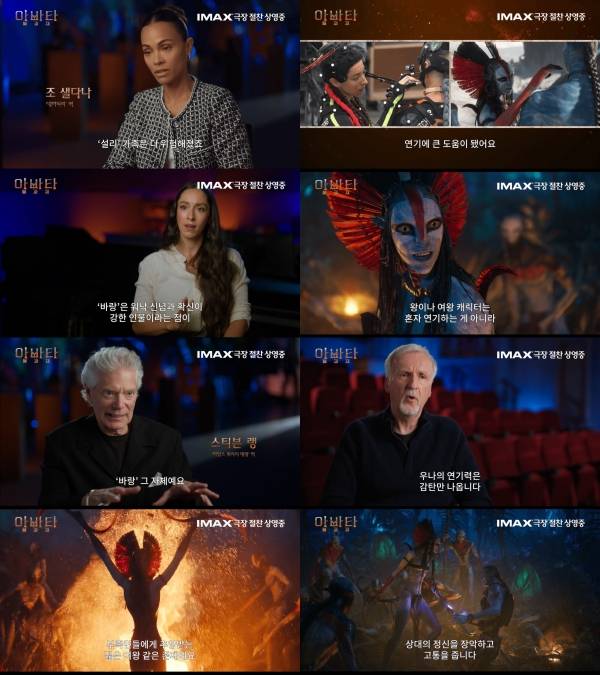 뿐만 아니라 이번 영상은 '바랑' 역을 맡은 찰리 채플린의 손녀, 우나 채플린의 연기를 집중적으로 조명하며 시선을 사로잡는다. 우나 채플린은 강렬한 눈빛과 절제된 움직임만으로 장면을 장악하며, 재의 부족을 이끄는 젊은 지도자의 카리스마를 설득력 있게 그려낸다. 이에 대해 제임스 카메론 감독은 "우나 채플린의 연기력은 감탄만 나온다. 눈빛이며 말투며 정말 훌륭하다"라고 극찬했고, '마일스 쿼리치 대령' 역의 스티븐 랭 역시 "움직임 하나하나가 캐릭터 그 자체로 표현된다"고 덧붙였다. '제이크 설리' 역의 샘 워싱턴 또한 "그의 연기는 특별하다. 극장에서 보면 더 큰 충격과 공포로 다가올 것" 이라 전해, 스크린에서 마주할 '바랑'의 임팩트에 대한 기대감을 더한다. 실제 연기 장면과 완성된 캐릭터 비주얼을 함께 담아낸 이번 영상은, 우나 채플린의 미세한 움직임이 퍼포먼스 캡처 기술을 통해 스크린 속 '바랑'으로 구현되는 과정을 생생하게 전하며 극장에서 마주할 압도적인 존재감을 예고한다.