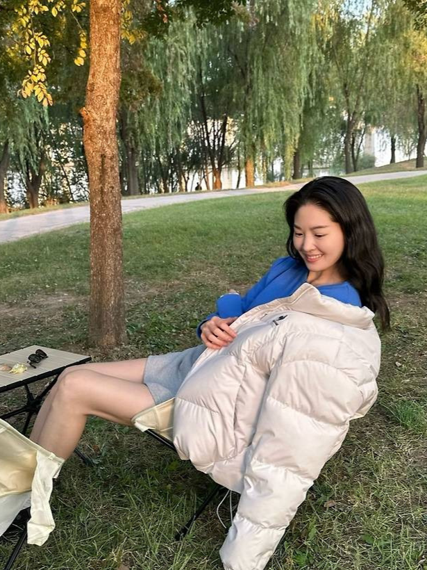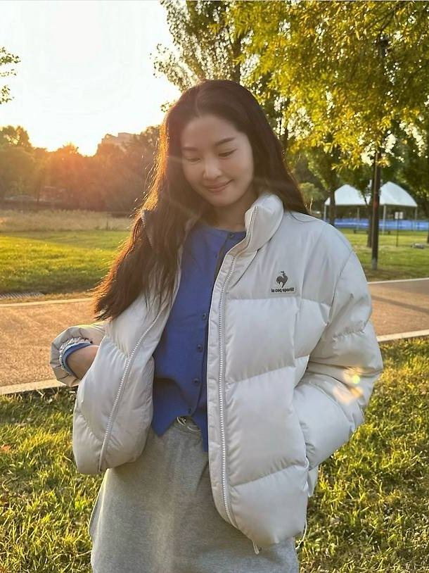류이서는 밝은 화이트 패딩과 함께 포근한 느낌을 더하면서, 가벼운 외출에도 어울리는 편안한 스타일을 완성했습니다.