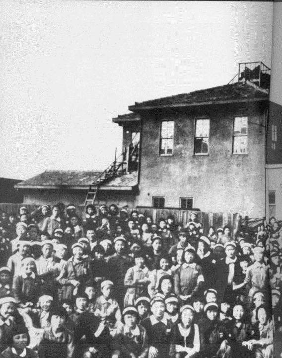 학생에게 일장기 머리띠를 두르게 하고 차출되기 전에