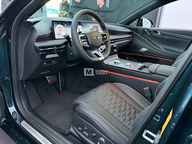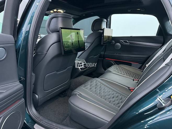 실내는 최신 3-스포크 디자인의 스티어링 휠이 새롭게 적용됐다. 또 수평형 레이아웃에 클러스터와 AVN 화면이 하나로 연결된 '27인치 OLED 디스플레이' 및 터치 타입 공조장치를 적용해 편의성을 강화하면서도 하이테크하고 세련된 이미지를 연출했다.