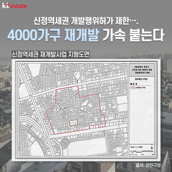 지난 7월, 양천구청은 서울 양천구 신정동 965-30번지 일대 신정역세권 도시정비형 재개발사업(예정)구역을 개발행위허가 제한지역으로 지정∙고시했습니다. 이는 역세권 도시정비형 재개발사업(예정)구역 내 비경제적인 건축행위 및 부동산투기를 목적으로 지분 쪼개기 행위 등을 사전에 방지하고 향후 원활한 사업시행을 위함인데요.