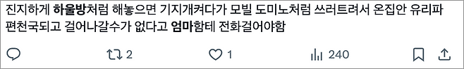 하울 방에 대해 묘사할 때 엄마가 등장하기도 한다.