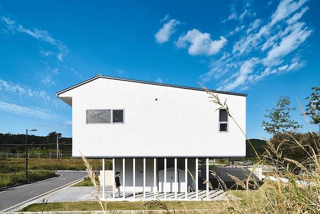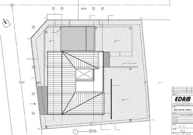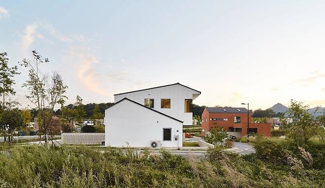 최초 설계에서는 지붕이 박공이 아닌 외경사였는데, 지구단위계획 조례안에 막혀 어쩔 수 없이 박공의 형태로 수정했습니다. 최초 설계가 더 심플해 보이고 좋았는데 참 아쉬운 부분이에요.
