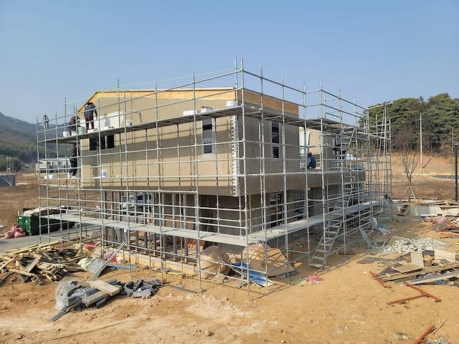 대지면적은 150평, 건평은 1층 26평, 2층 26평 총 52평이에요. 2021년 8월 착공허가를 받고 9월부터 본격적으로 시공에 들어갔어요. 사실 이때가 코로나19로 인해 각종 자재비와 인건비가 계속해서 상승하는 시기였어요. 돌이켜보면 몇 달 늦게 삽을 떴으면 시작하기 힘들었을 수도 있겠다 싶었습니다.
