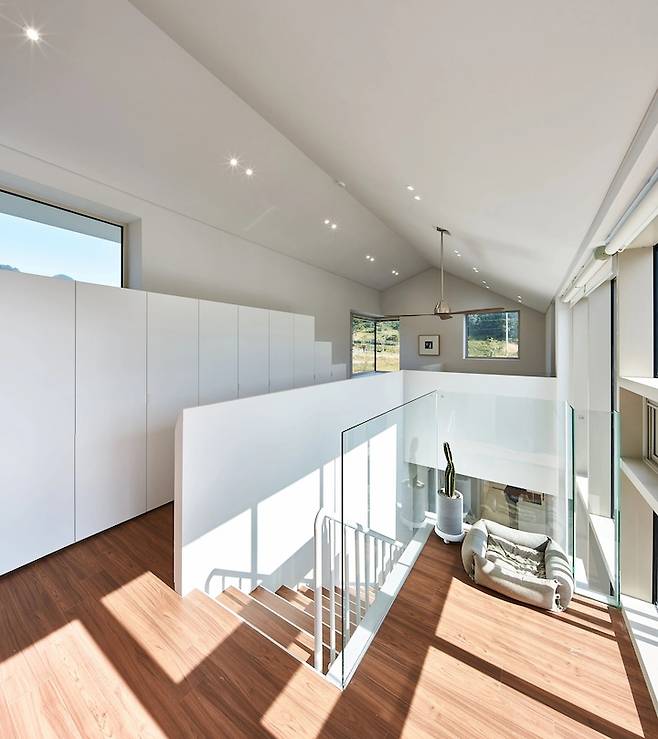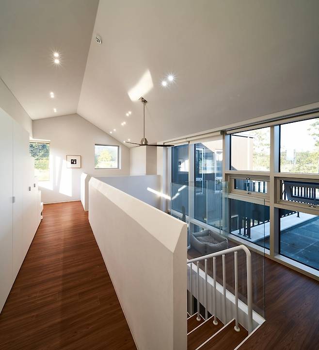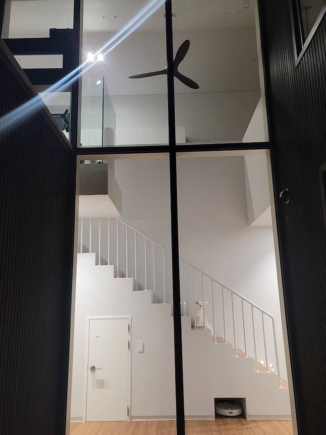 그리고 그 위로 고양이들이 오르내릴 수 있도록 계단을 만들어 두었습니다. 복도장 위에 있는 창은 오로지 고양이들을 위한 창이에요. 설계 소장님의 배려입니다 : )