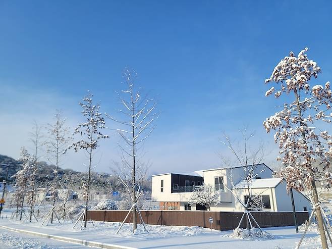획일화 된 구조의 아파트보다는 방 하나, 창문 하나, 동선과 가구 하나까지 우리만의 라이프 스타일을 만들 수 있는 공간이 만들고 싶어진 거에요. 그러다 대규모 전원주택 개발 단지인 이곳 '담양 담빛문화지구'에 대지를 분양받게 되었고, 2021년 8월 착공, 이듬해 4월 입주하여 현재 햇수로 2년째 거주 중입니다.