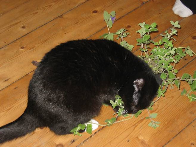 이때, 고양이에게 깻잎 대신 캣닢을 주면 좋아요. 캣닢은 고양이계 마약으로 불리는데, 고양이에게 행복감을 주는 네페탈락톤(Nepetalactone) 성분이 들어있기 때문입니다.