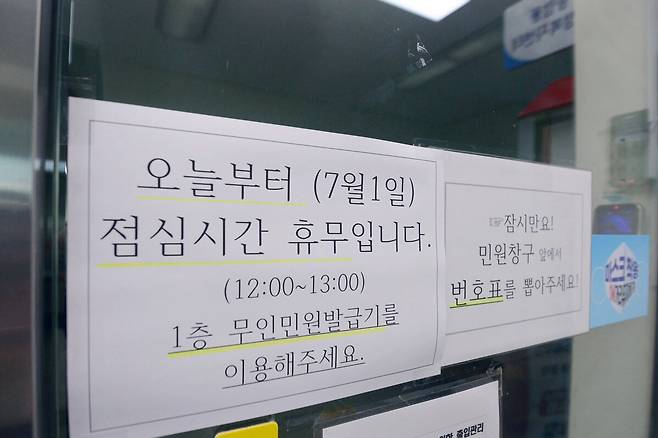 그러나 대구 중구의회에서 21일 ‘대구시 중구 민원실 설치 및 운영 관련 조례안’을 가결하면서 법적 제도화 움직임으로까지 이어졌다. 이번 조례안 통과는 대구 북구에 이어 두 번째다. 이러한 변화가 점차 확대되고 있다는 방증이다. 다만 행정 수요가 높은 서울의 경우는 점심시간 휴무제 도입 논의가 이루어지지 않고 있다. 서울의 한 관계자는 “도심 내 행정복지센터는 점심이 가장 바쁜 시간”이라며 “서울 특성을 감안하면 사회적 합의가 먼저”라고 말했다.