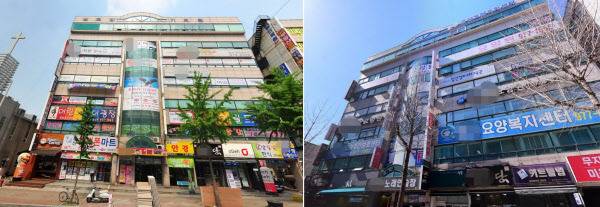 일산동구 중산마을사거리 건물들도 학원 간판을 내리고 요양원 간판을 달고 있다. 아카데미타운 빌딩은 10여년 전만 하더라도 2층이 키즈카페, 5층이 수학학원과 프랜차이즈 어학원이었다. 현재 2층에는 J주간보호센터가 있다. 5층은 A요양원으로 바뀌었다. 3층에도 새 요양원이 생겼다. 주변을 보면 요양원 간판이 없는 건물을 찾기 어렵다. 어린이전용수영장이 있던 해태쇼핑타운 건물에는 2개 요양원이 생겼다. 중산사거리 일대에만 20개 이상 요양원이 있다.