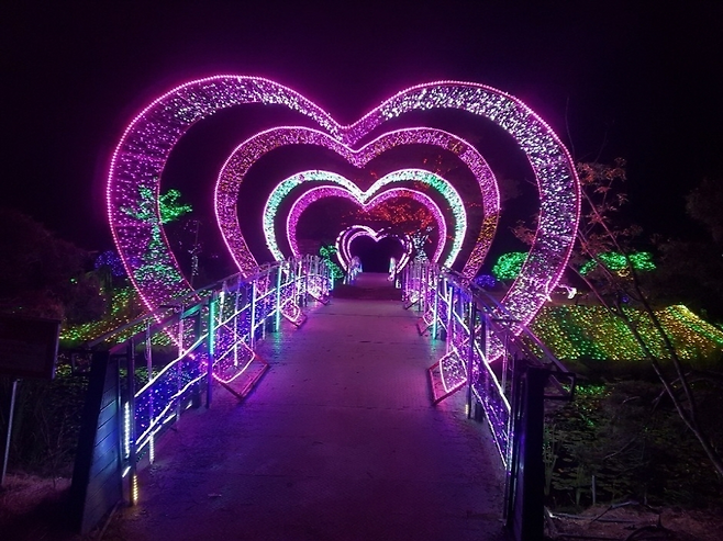 하트 모양의 조명 터널을 지나면, 마치 영화 속 장면처럼 반딧불이들이 춤추는 숲길이 이어진다. 몇 걸음 더 옮기면 별자리를 형상화한 정원이 펼쳐지고, 그 옆으로는 연인들이 나란히 앉아 사진을 남기는 벤치가 보인다. 이 모든 장면이 스쳐 지나가는 것이 아니라, 걷는 이의 속도에 맞춰 천천히 펼쳐진다는 점이 이 축제의 진짜 매력이다. 화려한 스포트라이트 대신 잔잔한 감성의 조도가 이 밤을 감싼다.