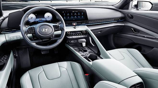 신형 아반떼의 실내에서 가장 눈에 띄는 변화는 중앙에 위치한 대형 디스플레이다. 16:9 비율의 와이드스크린은 일반적인 태블릿 PC나 노트북 화면과 동일한 비율로, 사용자에게 친숙한 환경을 제공한다.