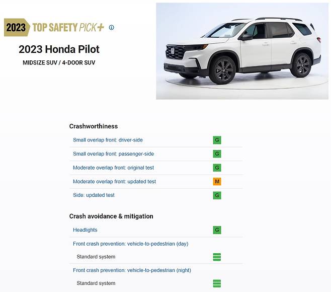 패밀리 SUV를 찾는 소비자는 튼튼한 안전설계를 가장 중요하게 생각한다. 그런 면에서 두 차 모두 합격이다. 가장 공신력 있는 충돌테스트 기관인 미국 고속도로 안전보험협회(IIHS)에서 최고등급인 ‘탑 세이프티 픽 플러스’를 받았다. 두 차 모두 운전석과 동반석 스몰 오버랩(25% 부분 충돌)뿐 아니라 측면충돌, 지붕 강도, 헤드램프 성능 등 대부분의 항목에서 최고점을 받았다.