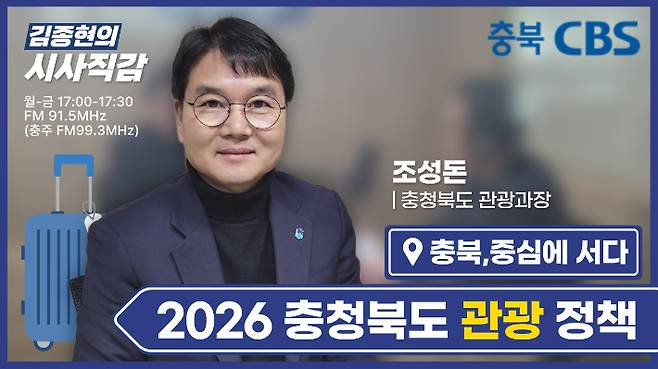 ◇ 김종현> <시사직감>은 매주 화요일 이 시간 <충북, 중심에 서다> 코너로 여러분 만나고 있습니다. <충북, 중심에 서다>는 충청북도가 추진하는 다양한 정책과 현안을 각 실국의 책임자, 담당자들이 직접 출연해 전해드리는 시간입니다. 오늘은 충청북도 조성돈 관광과장과 관광 활성화를 위한 충청북도의 다양한 정책에 대해서 이야기 나눠봤습니다.