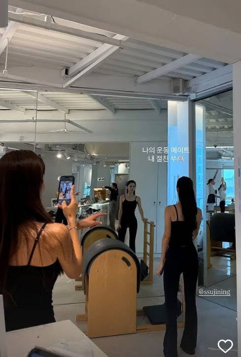 “나의 운동 메이트, 내 절친 쑤”라는 글과 함께 필라테스 스튜디오에서 찍은 사진을 게시한 거죠.