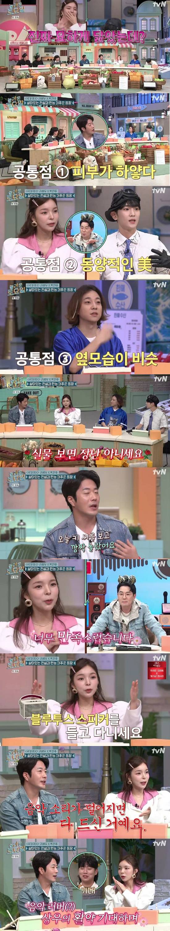 권상우는 "일단 둘 다 피부가 너무 하얗다"라며 공통점을 언급했다. 붐은 "동양적인 아름다움이 두 분 다 있다"라고 반응했고, 넉살은 "옆 모습이 엄청 닮았다"라고 전했다.