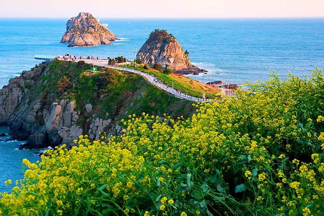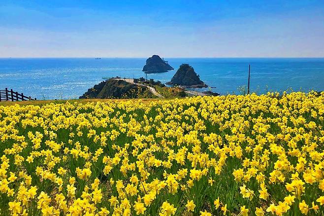 부산 남구 용호동에 자리한 오륙도 해맞이공원은 바다를 배경으로 화려한 유채꽃과 수선화가 피어나는 곳입니다.
