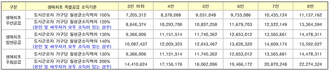 아래 소득기준 충족