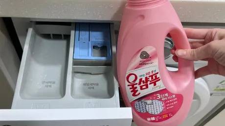옷감을 보호하기 위해 울샴푸와 같은 중성 세제를 사용하는 것이 좋습니다. 세탁기를 사용할 때는 란제리 울모드와 같은 섬세한 케어가 가능한 모드로 설정하는 것이 좋습니다.