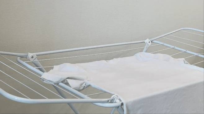 건조할 때는 옷걸이나 건조대 살대 하나에 면 티셔츠를 걸어두는 것이 아니라, 건조대 살대 여러 개를 사용해 티셔츠를 펼쳐 널어주는 것이 옷감의 손상이나 수축 없이 건조하는 데 도움이 됩니다.