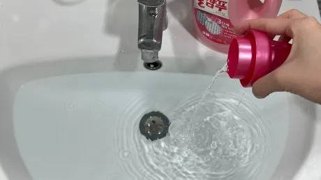 손세탁 시에는 울샴푸인 중성세제를 미온수에 풀고, 손으로 부드럽게 저어 가며 세탁합니다.