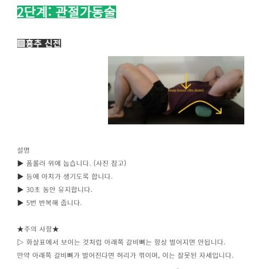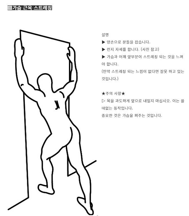 주의: 통증이 있거나 무리하게 당기지 말고 천천히 진행