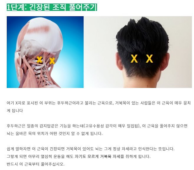 아래에는 집에서도 쉽게 따라할 수 있는 거북목 셀프 치료법을 정리해드릴게요.