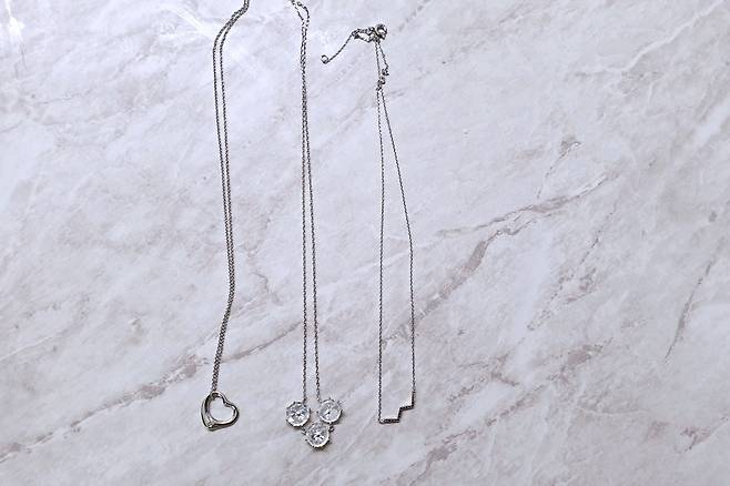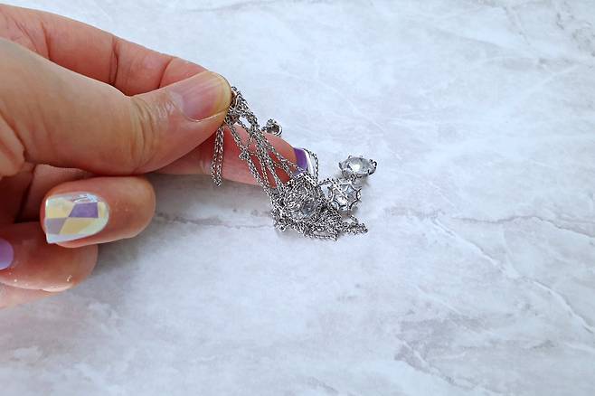 평소 줄이 가는 목걸이를 좋아하는데요. 외출할 때 착용하려고 보니 목걸이줄이 켜 버렸어요. 목걸이 줄이 가늘어 더 쉽게 엉키는 것 같아요.
