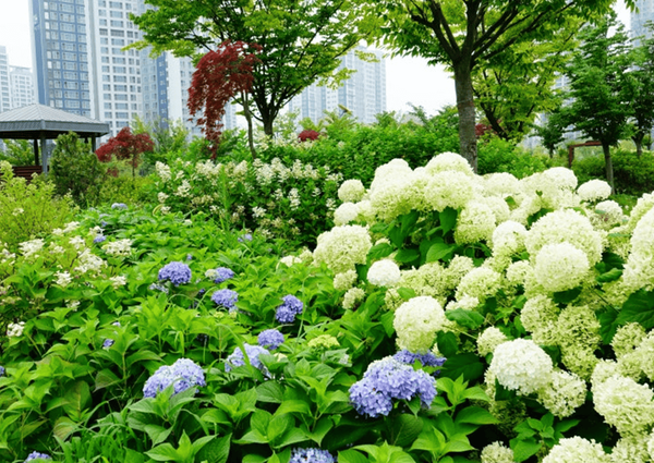 또한 송도 센트럴파크는 고층 빌딩과 자연 풍경이 어우러져 사진 찍기 좋은 장소로도 인기가 높은데요. 수국이 피는 계절에는 특히 야경과 함께 담은 사진들이 SNS에서 많은 주목을 받습니다. 도심 한복판에서 수국을 만나는 경험, 이곳에서 그 특별한 여름의 감성을 느껴보시길 바랍니다.