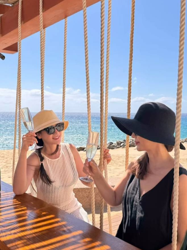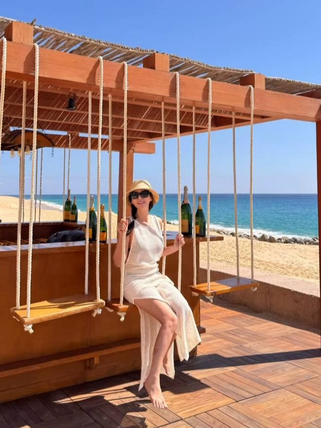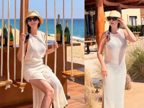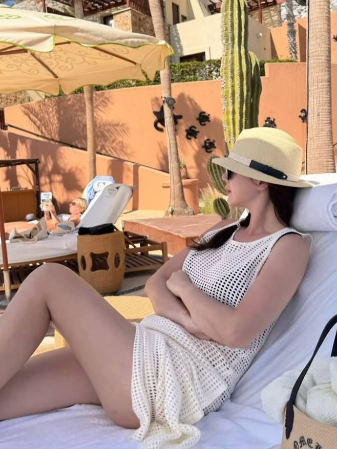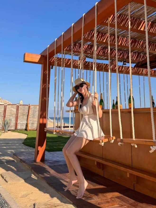 이혜원이 해변 리조트에서 편안하면서도 세련된 비치웨어 스타일을 선보였습니다.