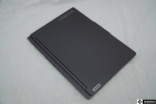 이번 세대의 레노버 리전 슬림 5i 16IRH8 i7 모델도 아주 크게 눈에 띄는 디자인은 아니지만, 특징이라면 역시 LEGION 로고가 상판 한켠에 제공되고, 음각 처리 및 유광 처리되어 노트북의 아이덴티티를 그대로 가져가는 모습이다.